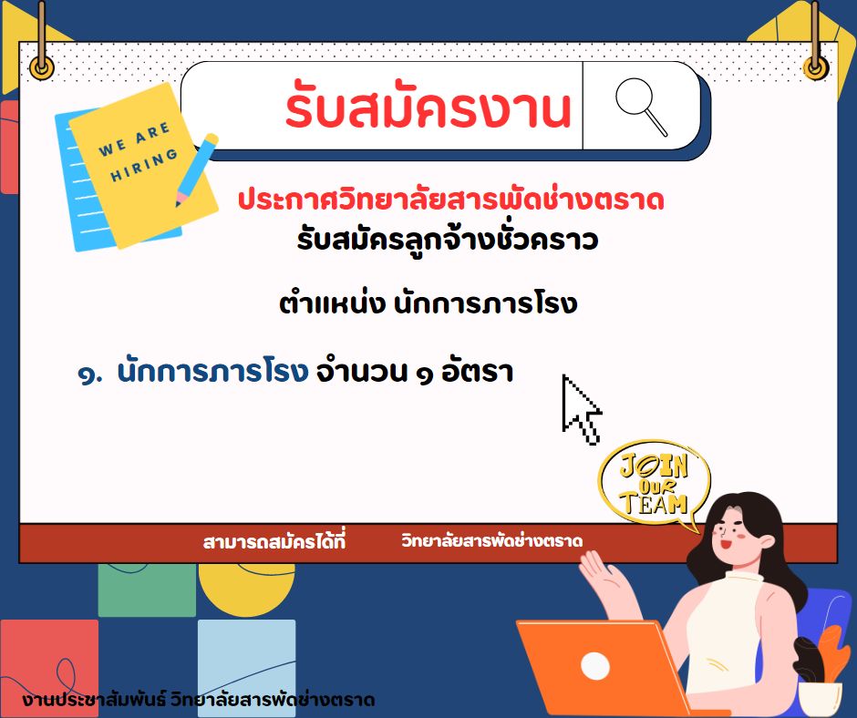 รับสมัครลูกจ้างชั่วคราว ตำแหน่ง เจ้าหน้าที่ธุรการ