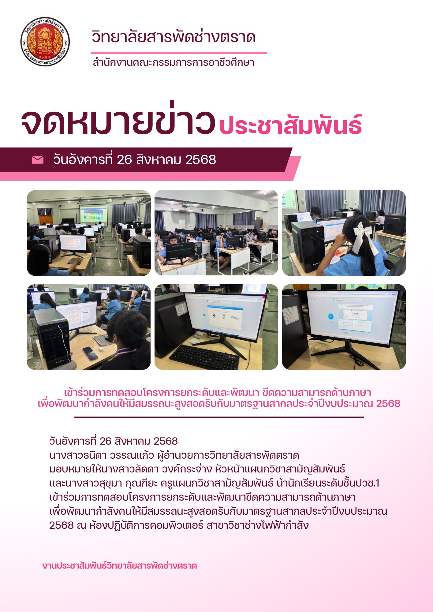 วารสาร วิทยาลัยสารพัดช่างตราด วันที่ 26 สิงหาคม 2568