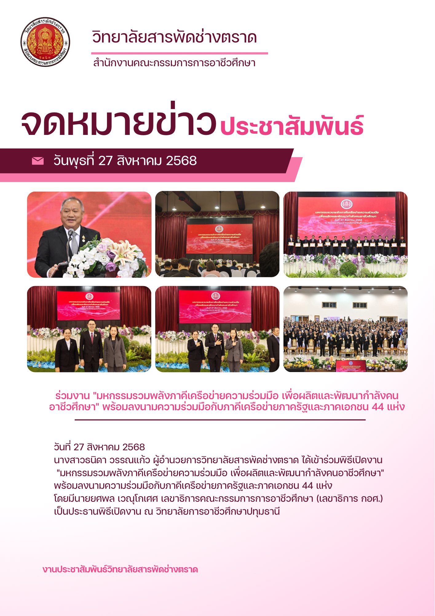 วารสาร วิทยาลัยสารพัดช่างตราด วันที่ 27 สิงหาคม 2568